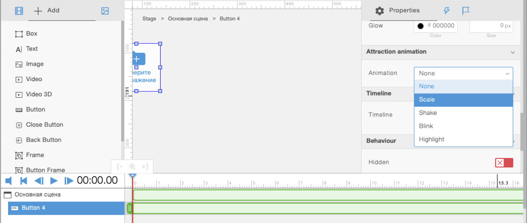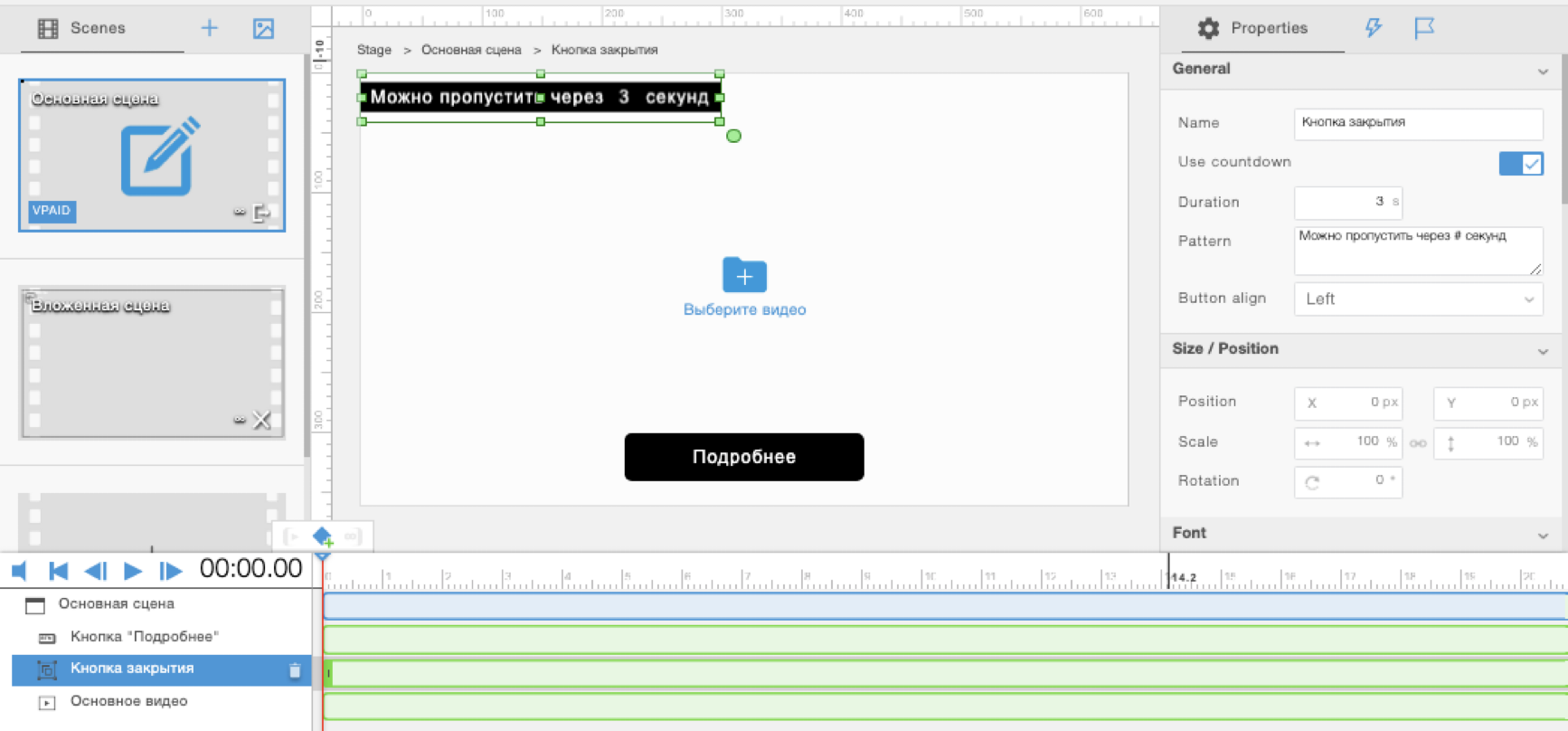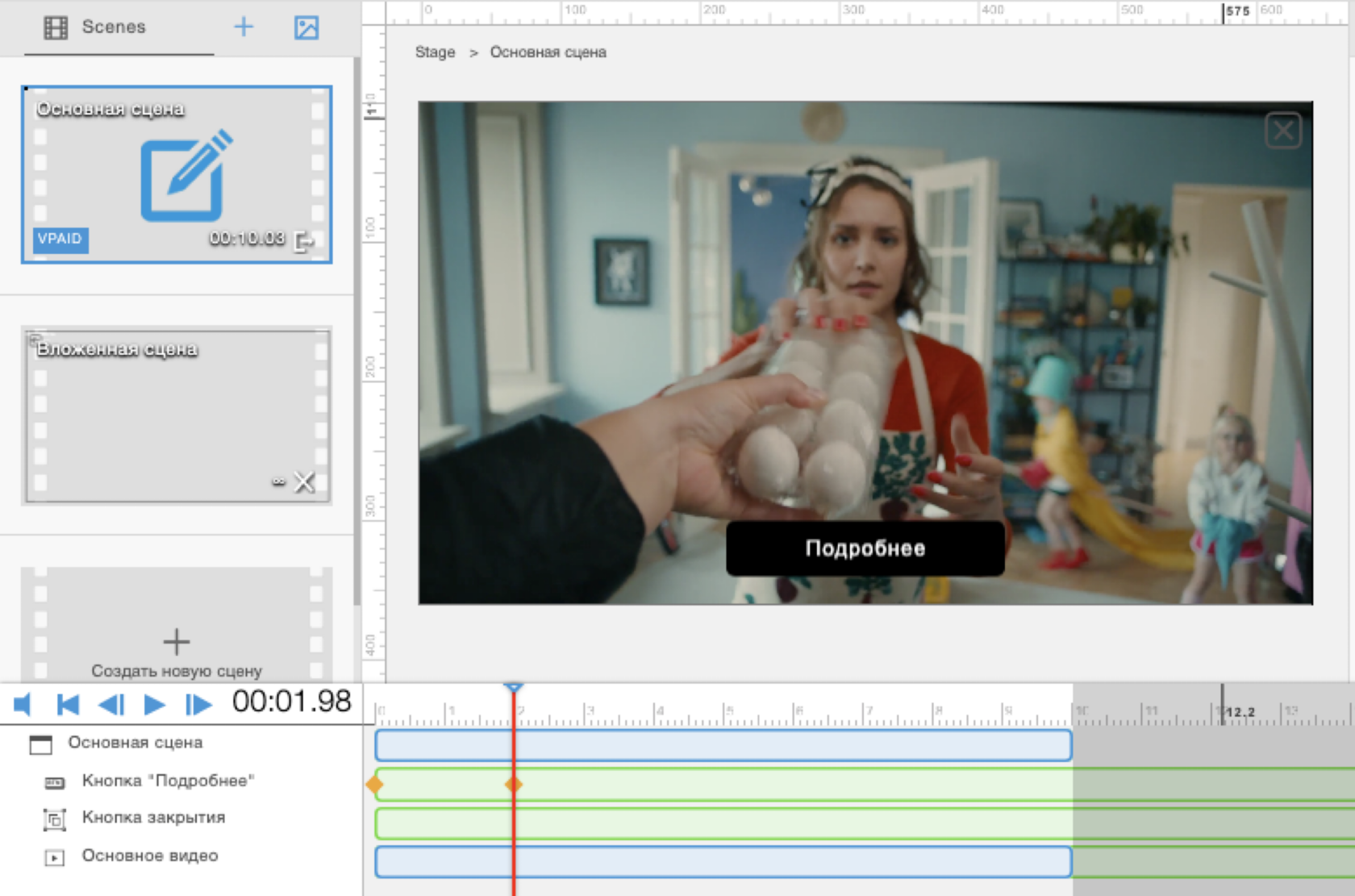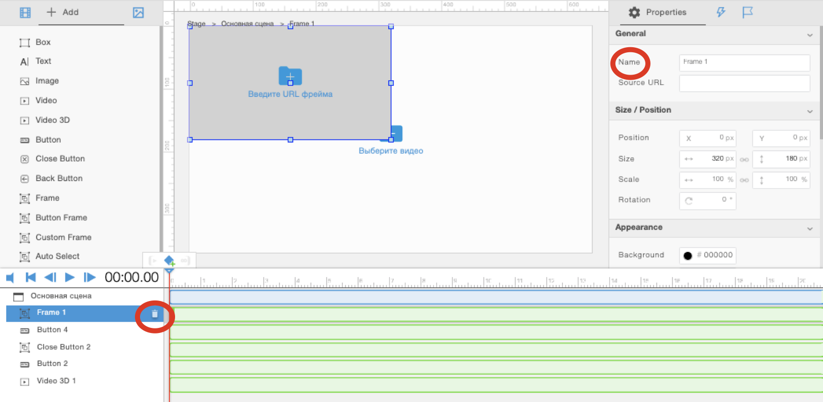Добавляем на сцены все готовые визуалы (ролики, кнопки, картинки), даем им имена, расставляем на финальных местах